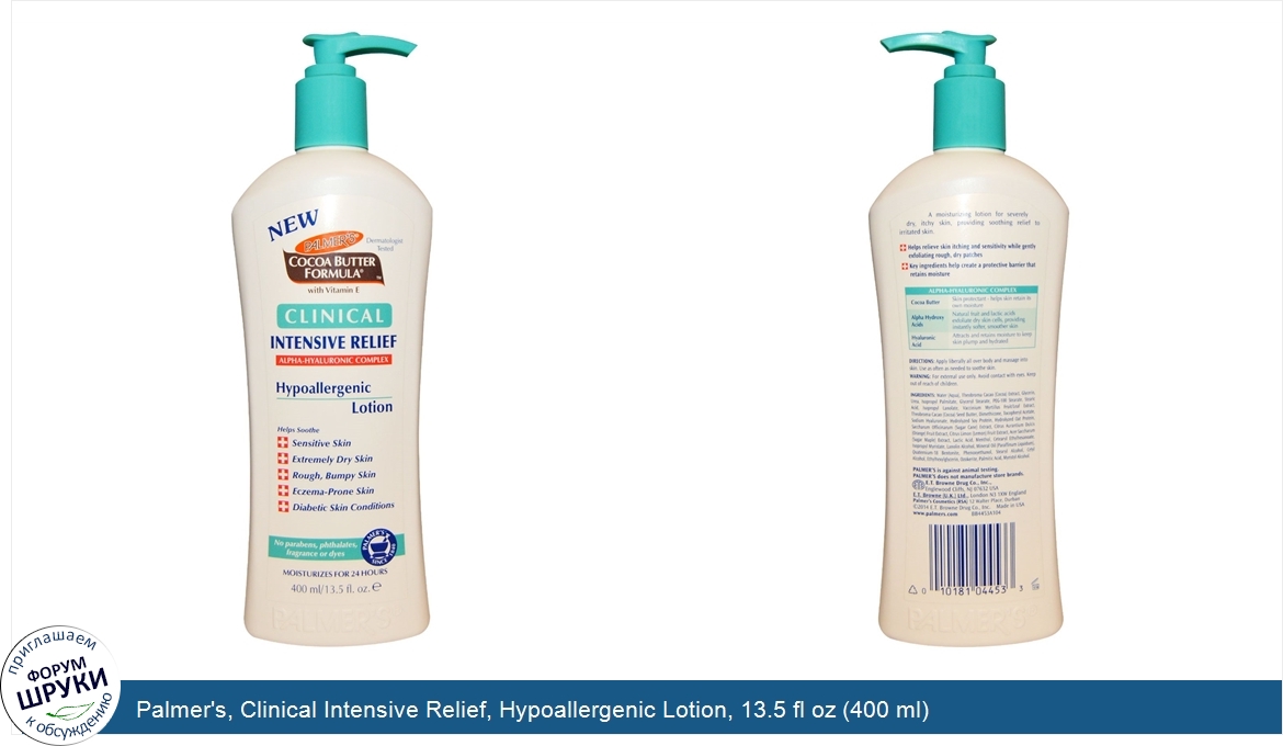 Друзья, если у вас есть отзыв/дополнение/комментарий/вопрос относительно Palmer's, Clinical Intensive Relief, Hypoallergenic Lotion, 13.5 fl oz (400 ml) - напишите его ответом в эту тему (это будет полезно всему сообществу в целом и вам в отдельности).