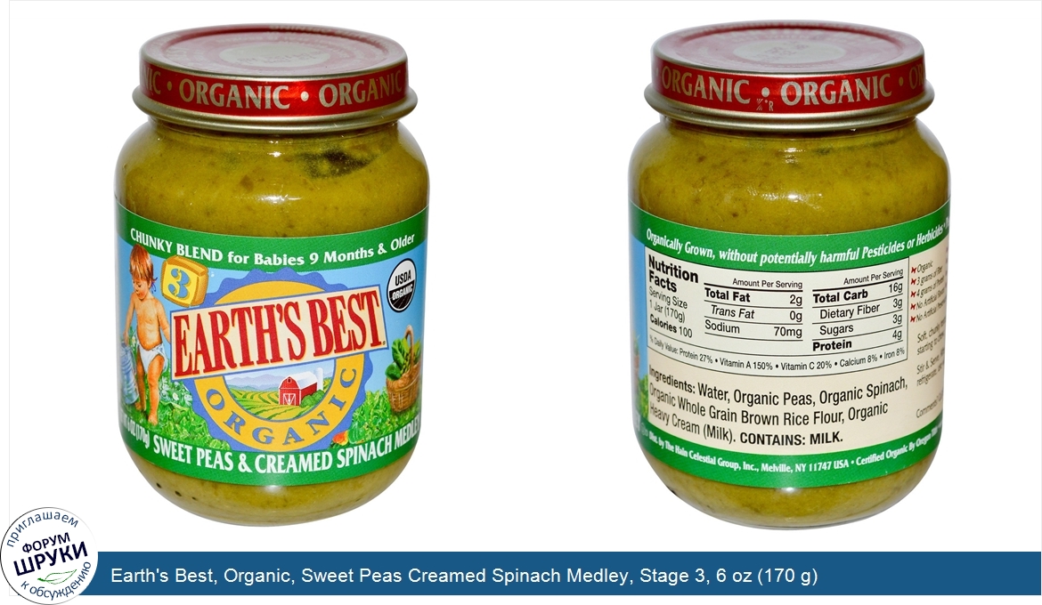 Друзья, если у вас есть отзыв/дополнение/комментарий/вопрос относительно Earth's Best, Organic, Sweet Peas Creamed Spinach Medley, Stage 3, 6 oz (170 g) - напишите его ответом в эту тему (это будет полезно всему сообществу в целом и вам в отдельности).