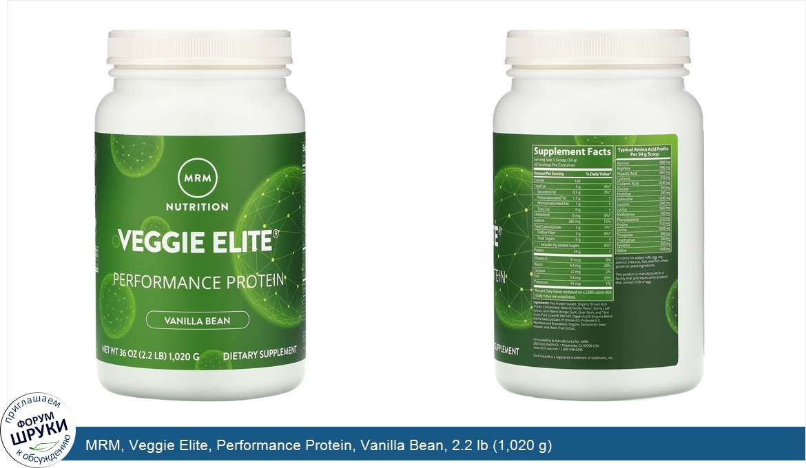 Друзья, если у вас есть отзыв/дополнение/комментарий/вопрос относительно MRM, Veggie Elite, Performance Protein, Vanilla Bean, 2.2 lb (1,020 g) - напишите его ответом в эту тему (это будет полезно всему сообществу в целом и вам в отдельности).