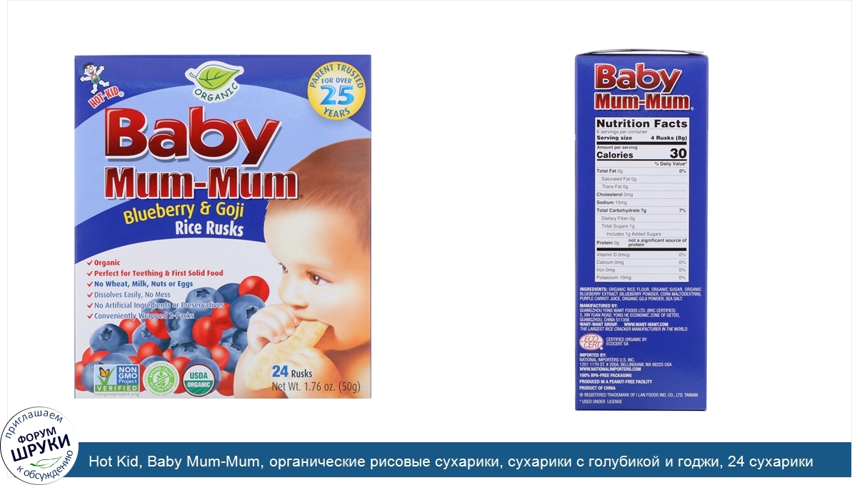 Друзья, если у вас есть отзыв/дополнение/комментарий/вопрос относительно Hot Kid, Baby Mum-Mum, органические рисовые сухарики, сухарики с голубикой и годжи, 24 сухарики, по 50 г (17,6 унций) каждый - напишите его ответом в эту тему (это будет полезно всему сообществу в целом и вам в отдельности).