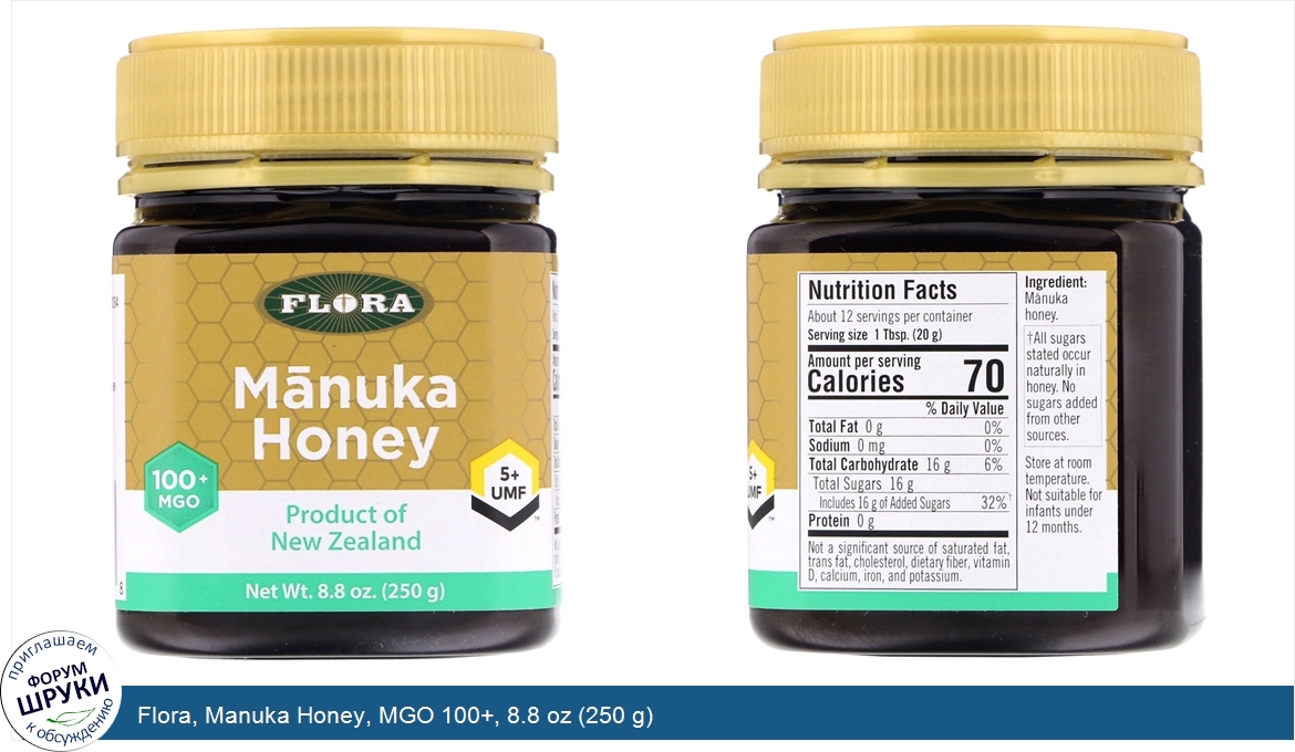 Друзья, если у вас есть отзыв/дополнение/комментарий/вопрос относительно Flora, Manuka Honey, MGO 100+, 8.8 oz (250 g) - напишите его ответом в эту тему (это будет полезно всему сообществу в целом и вам в отдельности).