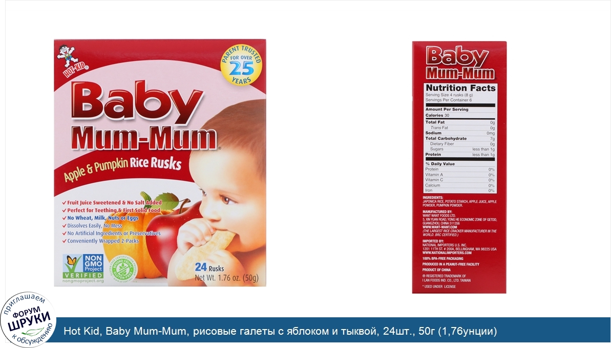 Друзья, если у вас есть отзыв/дополнение/комментарий/вопрос относительно Hot Kid, Baby Mum-Mum, рисовые галеты с яблоком и тыквой, 24шт., 50г (1,76унции) - напишите его ответом в эту тему (это будет полезно всему сообществу в целом и вам в отдельности).