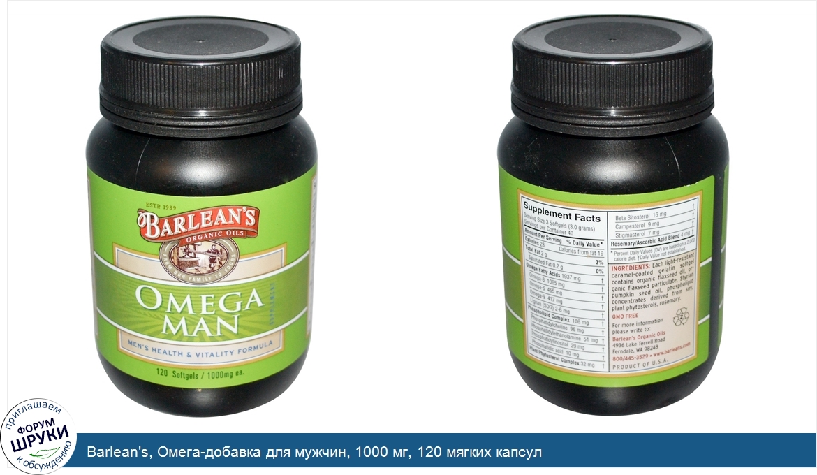 Компания основана в 1989 году. От нашей семьи к вашей. Состав для здоровья и жизненной силы мужчин. Омега для мужчин от Barlean содержит действующую вместе смесь необходимых омега-кислот и растительных активных в...