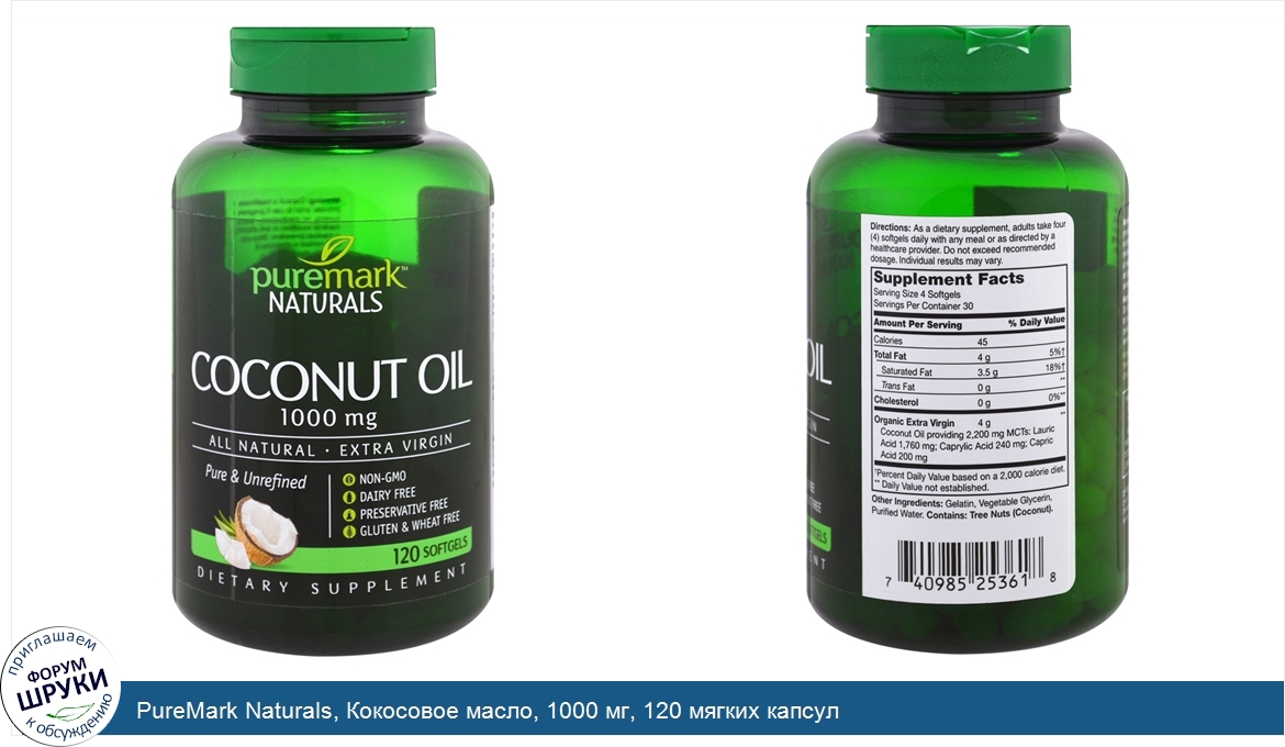 Друзья, если у вас есть отзыв/дополнение/комментарий/вопрос относительно PureMark Naturals, Кокосовое масло, 1000 мг, 120 мягких капсул - напишите его ответом в эту тему (это будет полезно всему сообществу в целом и вам в отдельности).