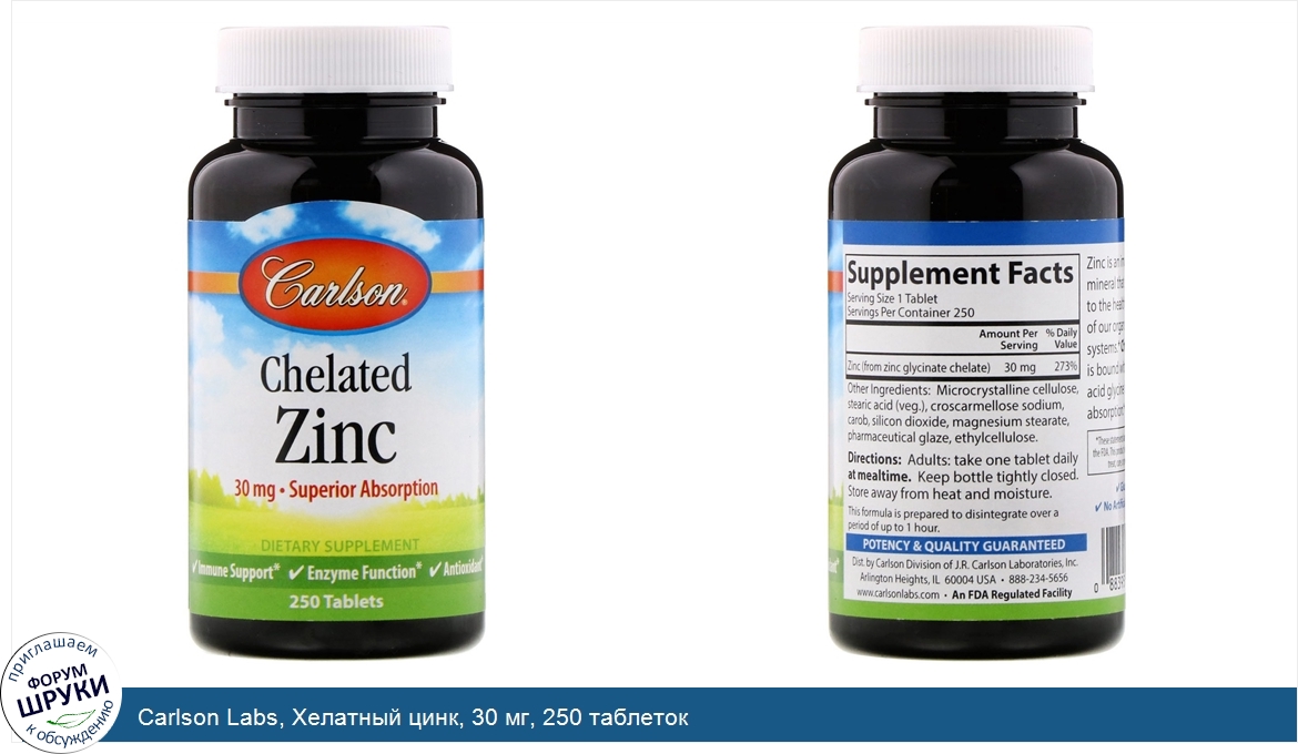 Друзья, если у вас есть отзыв/дополнение/комментарий/вопрос относительно Carlson Labs, Хелатный цинк, 30 мг, 250 таблеток - напишите его ответом в эту тему (это будет полезно всему сообществу в целом и вам в отдельности).