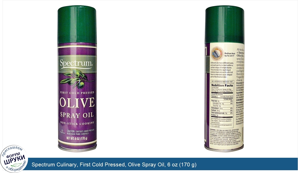 Spectrum Culinary, First Cold Pressed, Olive Spray Oil, 6 oz (170 g)