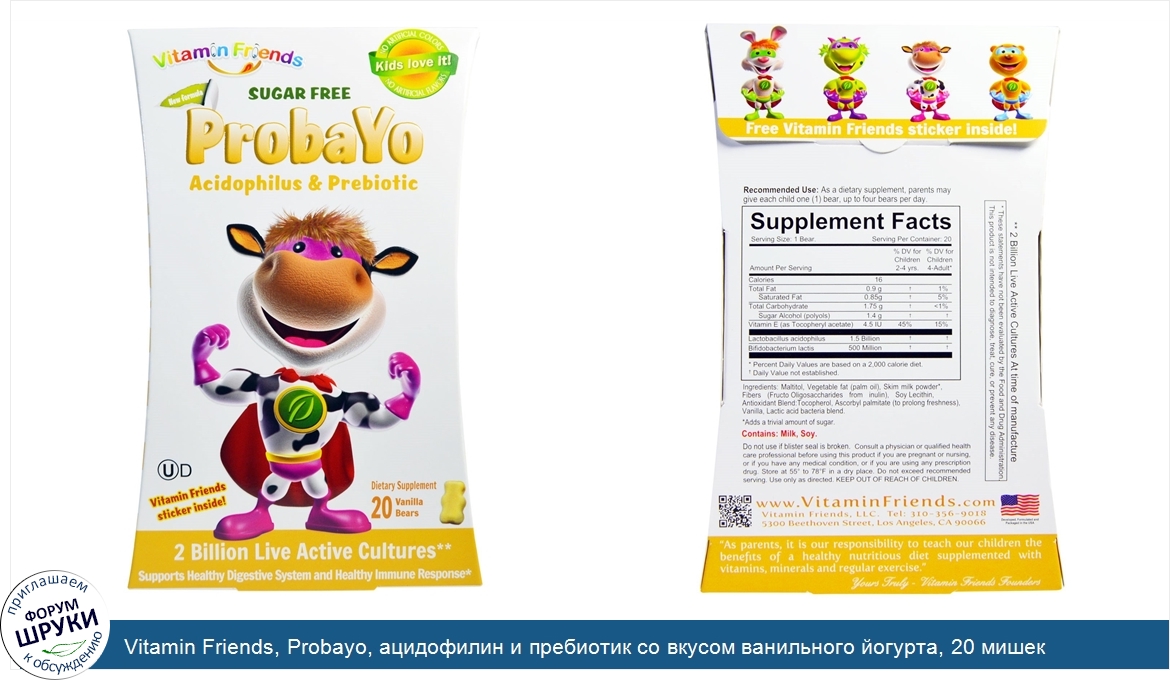 Друзья, если у вас есть отзыв/дополнение/комментарий/вопрос относительно Vitamin Friends, Probayo, ацидофилин и пребиотик со вкусом ванильного йогурта, 20 мишек - напишите его ответом в эту тему (это будет полезно всему сообществу в целом и вам в отдельности).