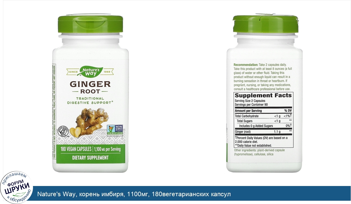 Nature's Way, корень имбиря, 1100мг, 180вегетарианских капсул