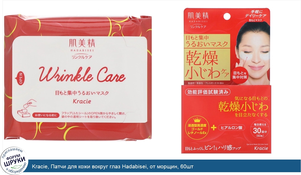 ru Kracie, Патчи для кожи вокруг глаз Hadabisei, от морщин, 60шт