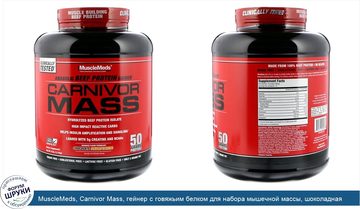 Друзья, если у вас есть отзыв/дополнение/комментарий/вопрос относительно MuscleMeds, Carnivor Mass, гейнер с говяжьим белком для набора мышечной массы, шоколадная арахисовая паста, 2744 г (6 фунтов) - напишите его ответом в эту тему (это будет полезно всему сообществу в целом и вам в отдельности).