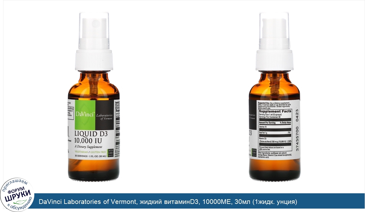 Друзья, если у вас есть отзыв/дополнение/комментарий/вопрос относительно DaVinci Laboratories of Vermont, жидкий витаминD3, 10000МЕ, 30мл (1жидк. унция) - напишите его ответом в эту тему (это будет полезно всему сообществу в целом и вам в отдельности).
