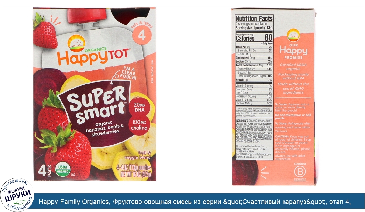 Друзья, если у вас есть отзыв/дополнение/комментарий/вопрос относительно Happy Family Organics, Фруктово-овощная смесь из серии &quot;Счастливый карапуз&quot;, этап 4, натуральные бананы, свекла и клубника, 4 пакета по 4 унции (113 г) - напишите его ответом в эту тему (это будет полезно всему сообществу в целом и вам в отдельности).
