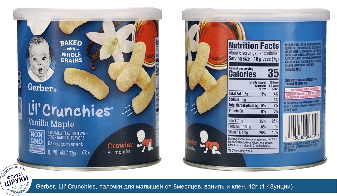 Друзья, если у вас есть отзыв/дополнение/комментарий/вопрос относительно Gerber, Lil' Crunchies, палочки для малышей от 8месяцев, ваниль и клен, 42г (1,48унции) - напишите его ответом в эту тему (это будет полезно всему сообществу в целом и вам в отдельности).