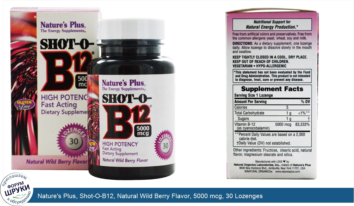 Друзья, если у вас есть отзыв/дополнение/комментарий/вопрос относительно Nature's Plus, Shot-O-B12, Natural Wild Berry Flavor, 5000 mcg, 30 Lozenges - напишите его ответом в эту тему (это будет полезно всему сообществу в целом и вам в отдельности).