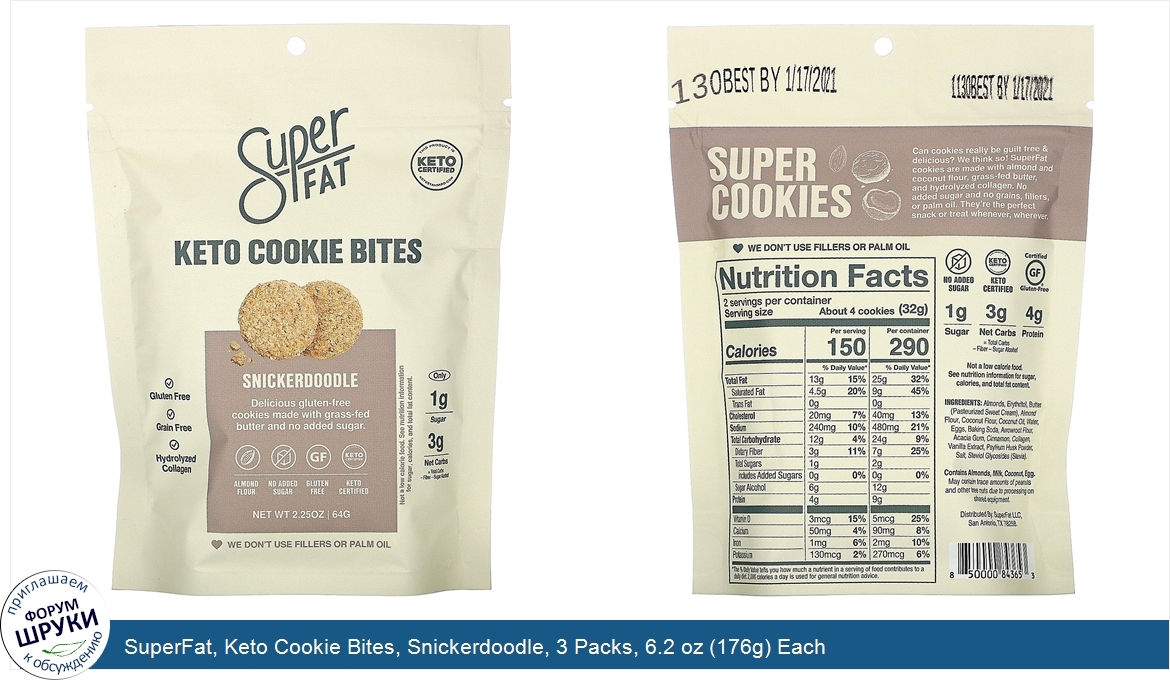 Друзья, если у вас есть отзыв/дополнение/комментарий/вопрос относительно SuperFat, Keto Cookie Bites, Snickerdoodle, 3 Packs, 6.2 oz (176g) Each - напишите его ответом в эту тему (это будет полезно всему сообществу в целом и вам в отдельности).