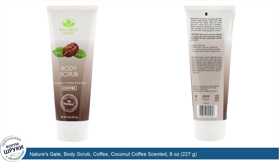 [DESCRIPT]No Nasties! . Paraben Free. Soy Free. No: Sodium Lauryl - Laureth - Coco Sulfates, Phthalates, Butylene Glycol, Artificial Colors. Cruelty Free and Vegan. Certified Gluten-Free. Reveal softer, smoother skin. Formulated with Coffee Powder to gently exfoliate, Nature's Gate Coffee Body Scrub helps cleanse, soften and smooth skin with a unique extract blend of Strawberry, Mango, Coconut and Macadamia Oil. At Nature's Gate, we believe it's not only essential what you put in your body, but what you put on it as well.[/DESCRIPT]... (описание дополняется)