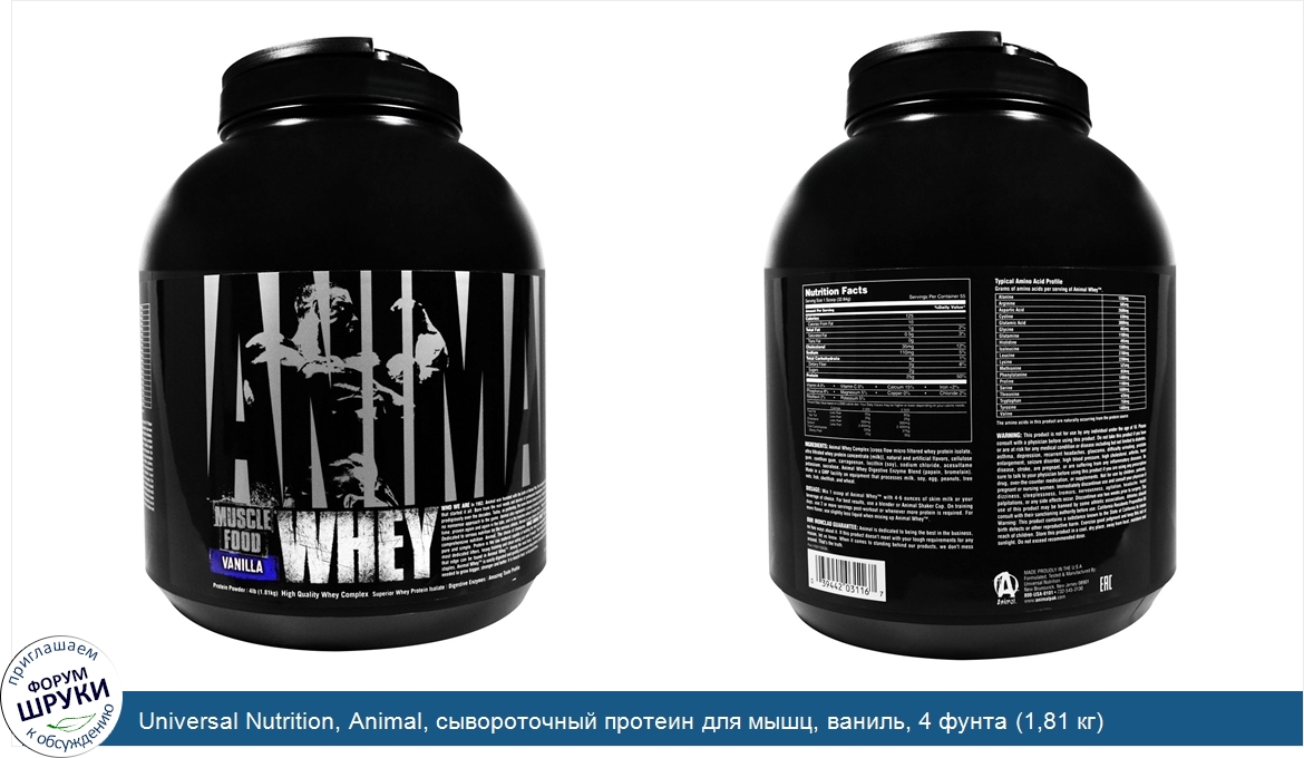 Друзья, если у вас есть отзыв/дополнение/комментарий/вопрос относительно Universal Nutrition, Animal, сывороточный протеин для мышц, ваниль, 4 фунта (1,81 кг) - напишите его ответом в эту тему (это будет полезно всему сообществу в целом и вам в отдельности).