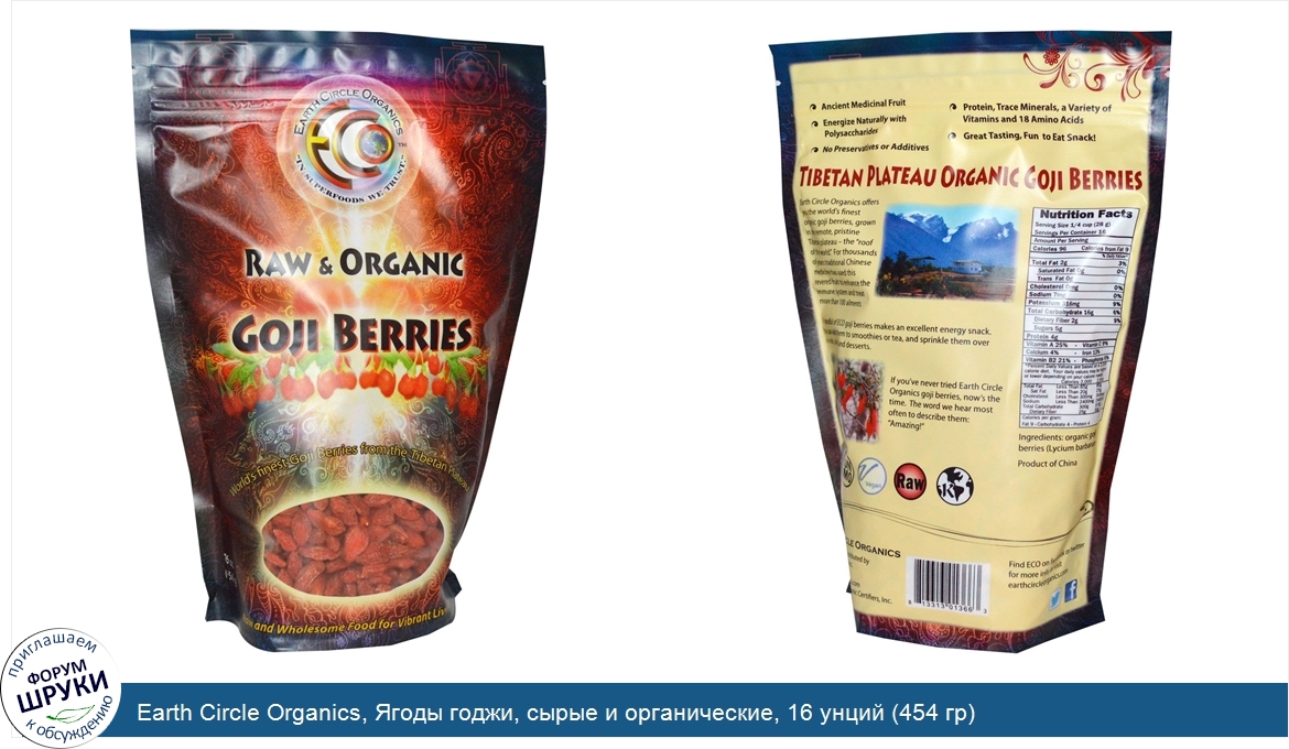 Друзья, если у вас есть отзыв/дополнение/комментарий/вопрос относительно Earth Circle Organics, Ягоды годжи, сырые и органические, 16 унций (454 гр) - напишите его ответом в эту тему (это будет полезно всему сообществу в целом и вам в отдельности).
