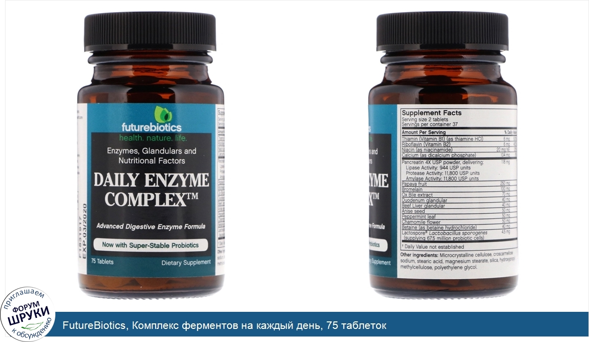 FutureBiotics, Комплекс ферментов на каждый день, 75 таблеток