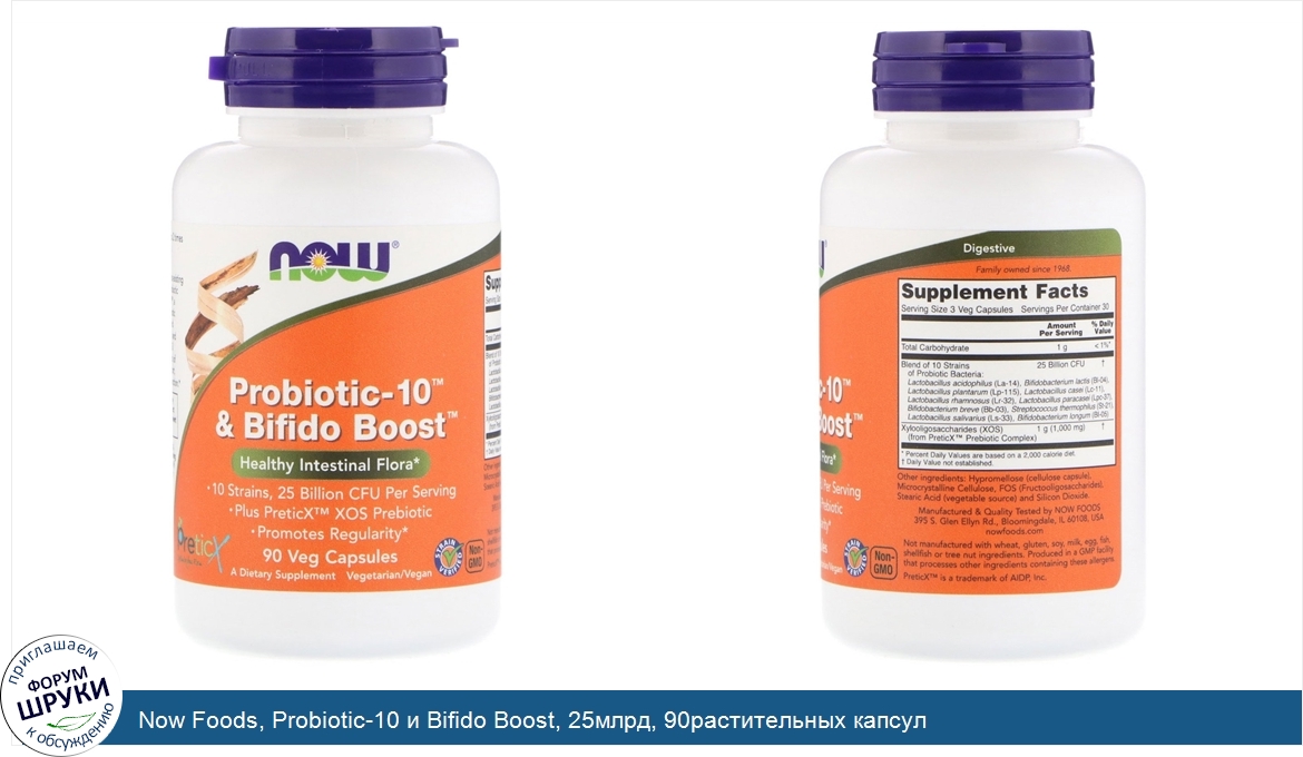 Now Foods, Probiotic-10 и Bifido Boost, 25млрд, 90растительных капсул