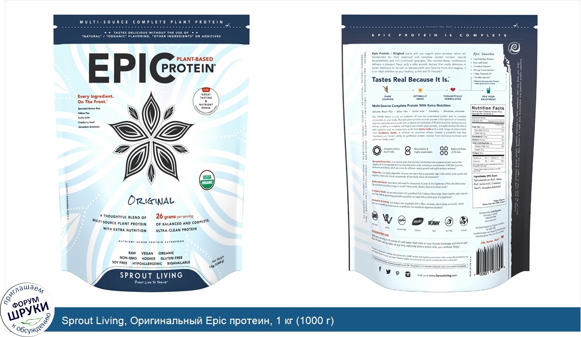 Друзья, если у вас есть отзыв/дополнение/комментарий/вопрос относительно Sprout Living, Оригинальный Epic протеин, 1 кг (1000 г) - напишите его ответом в эту тему (это будет полезно всему сообществу в целом и вам в отдельности).