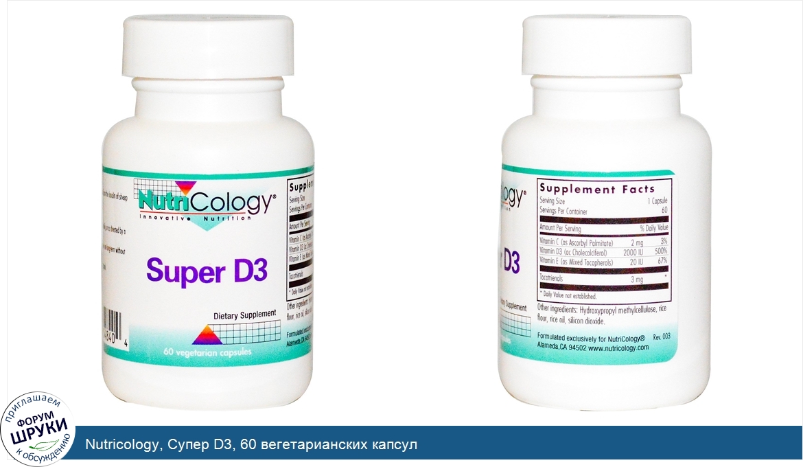 Nutricology, Супер D3, 60 вегетарианских капсул