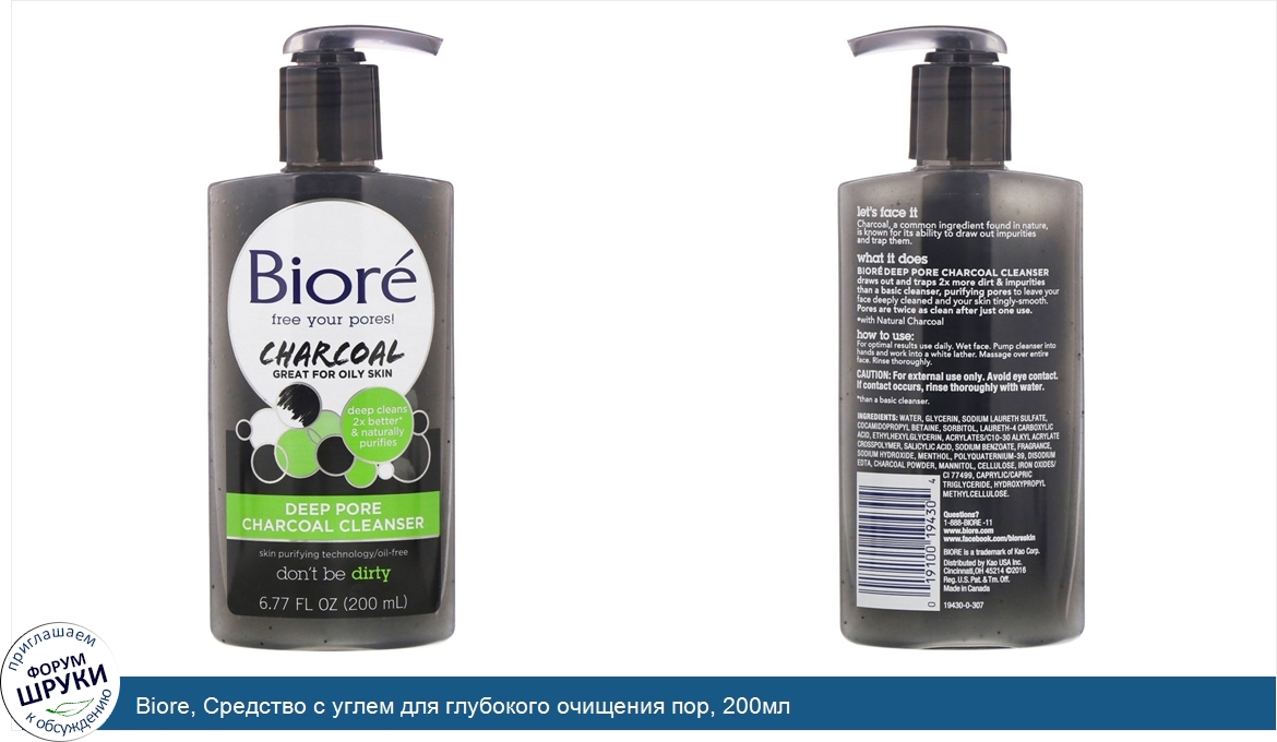 Biore, Средство с углем для глубокого очищения пор, 200мл