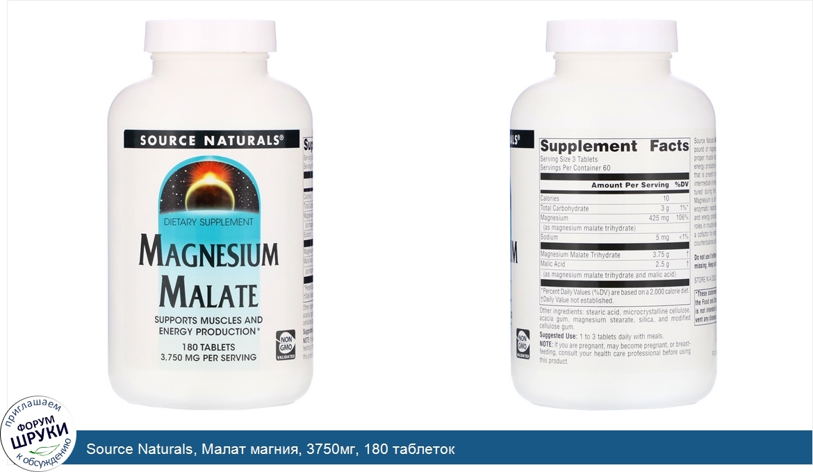 ru Source Naturals, Малат магния, 3750мг, 180 таблеток