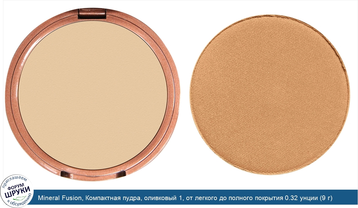 Mineral Fusion, Компактная пудра, оливковый 1, от легкого до полного покрытия 0.32 унции (9 г)