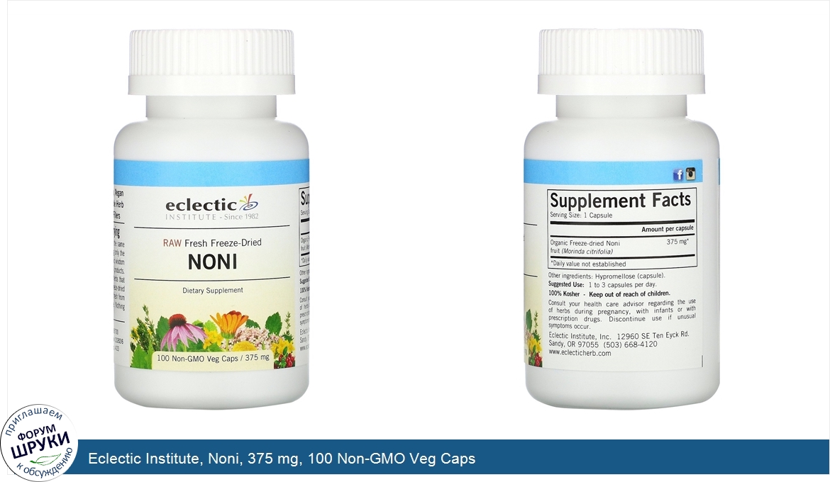 Eclectic Institute, Noni, 375 mg, 100 Non-GMO Veg Caps