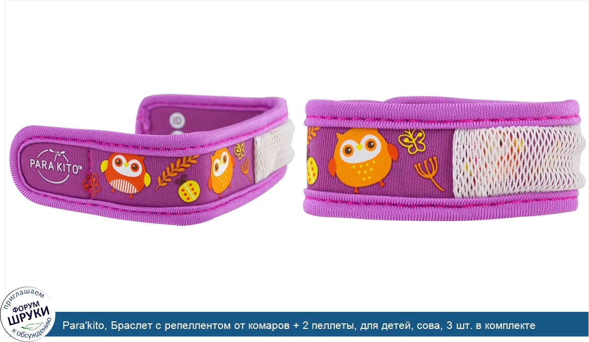 Друзья, если у вас есть отзыв/дополнение/комментарий/вопрос относительно Para'kito, Браслет с репеллентом от комаров + 2 пеллеты, для детей, сова, 3 шт. в комплекте - напишите его ответом в эту тему (это будет полезно всему сообществу в целом и вам в отдельности).