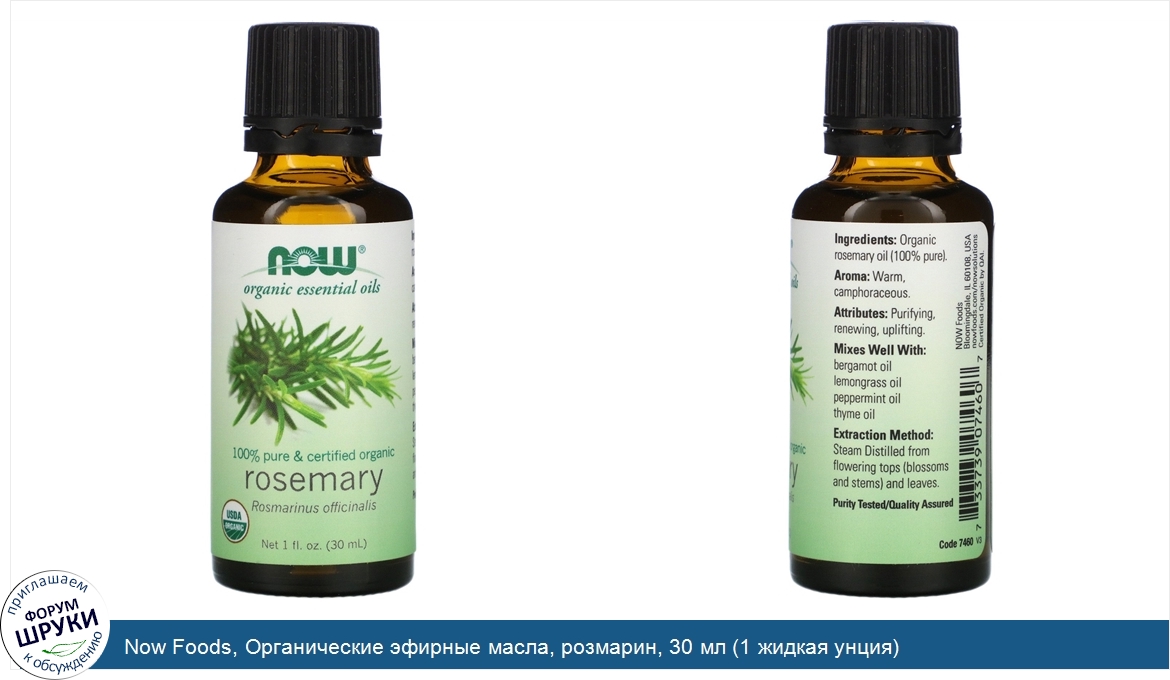ru Now Foods, Органические эфирные масла, розмарин, 30 мл (1 жидкая унция)