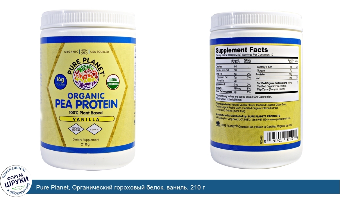 Друзья, если у вас есть отзыв/дополнение/комментарий/вопрос относительно Pure Planet, Органический гороховый белок, ваниль, 210 г - напишите его ответом в эту тему (это будет полезно всему сообществу в целом и вам в отдельности).