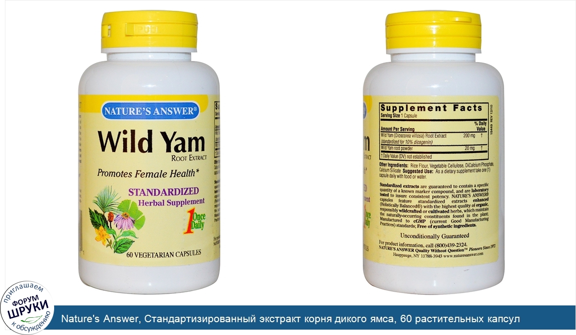 Друзья, если у вас есть отзыв/дополнение/комментарий/вопрос относительно Nature's Answer, Стандартизированный экстракт корня дикого ямса, 60 растительных капсул - напишите его ответом в эту тему (это будет полезно всему сообществу в целом и вам в отдельности).