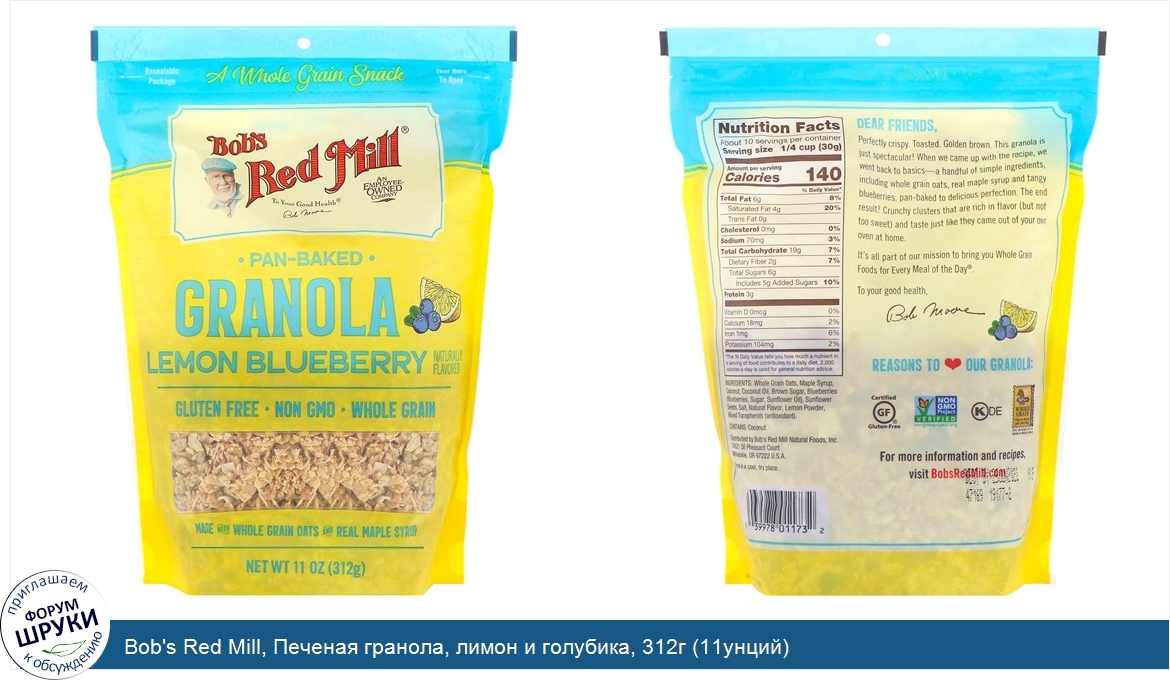 Друзья, если у вас есть отзыв/дополнение/комментарий/вопрос относительно Bob's Red Mill, Печеная гранола, лимон и голубика, 312г (11унций) - напишите его ответом в эту тему (это будет полезно всему сообществу в целом и вам в отдельности).