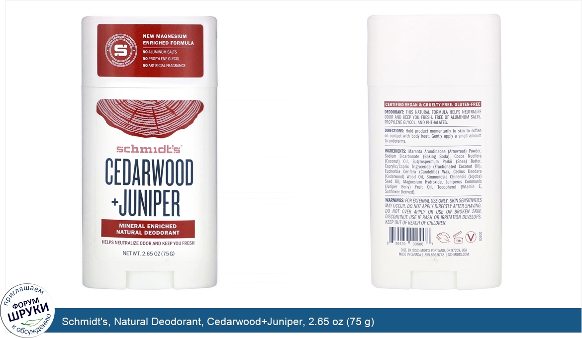 Друзья, если у вас есть отзыв/дополнение/комментарий/вопрос относительно Schmidt's, Natural Deodorant, Cedarwood+Juniper, 2.65 oz (75 g) - напишите его ответом в эту тему (это будет полезно всему сообществу в целом и вам в отдельности).