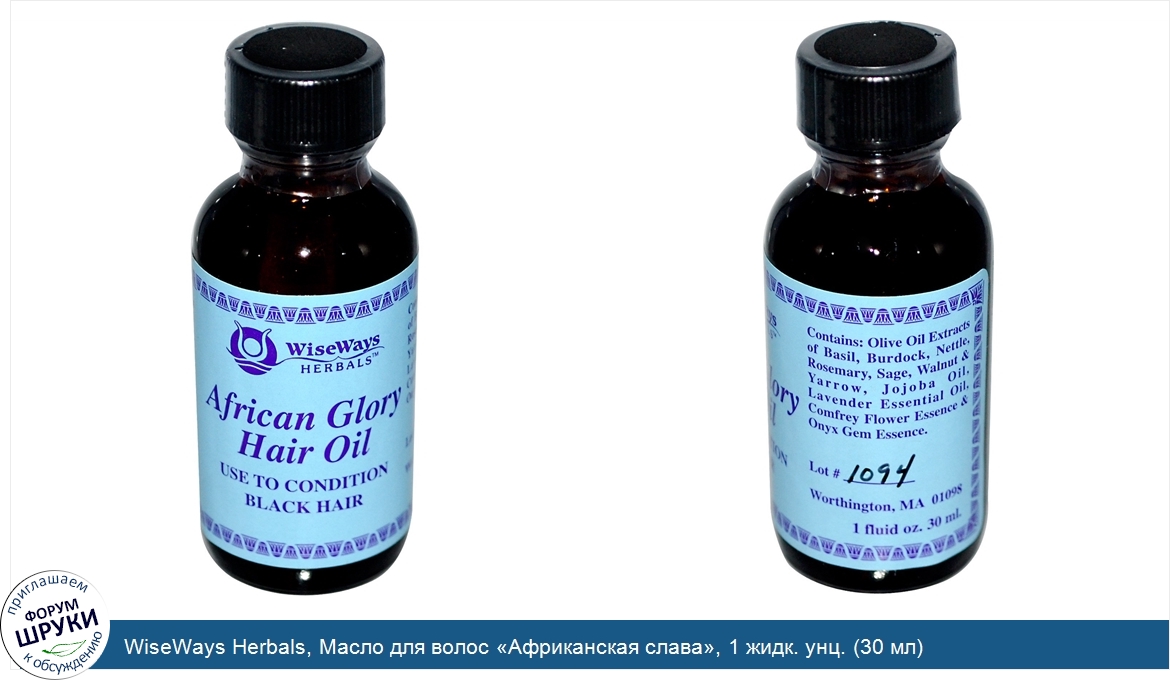 Друзья, если у вас есть отзыв/дополнение/комментарий/вопрос относительно WiseWays Herbals, Масло для волос «Африканская слава», 1 жидк. унц. (30 мл) - напишите его ответом в эту тему (это будет полезно всему сообществу в целом и вам в отдельности).