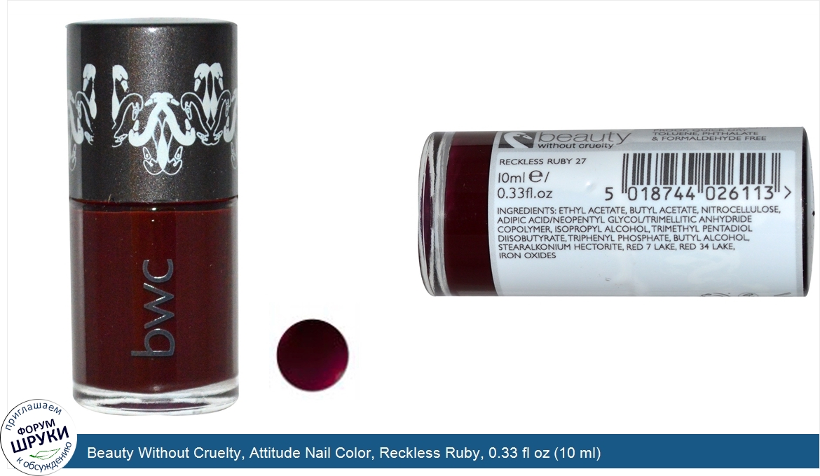 Beauty Without Cruelty, Attitude Nail Color, Reckless Ruby, 0.33 fl oz (10 ml)