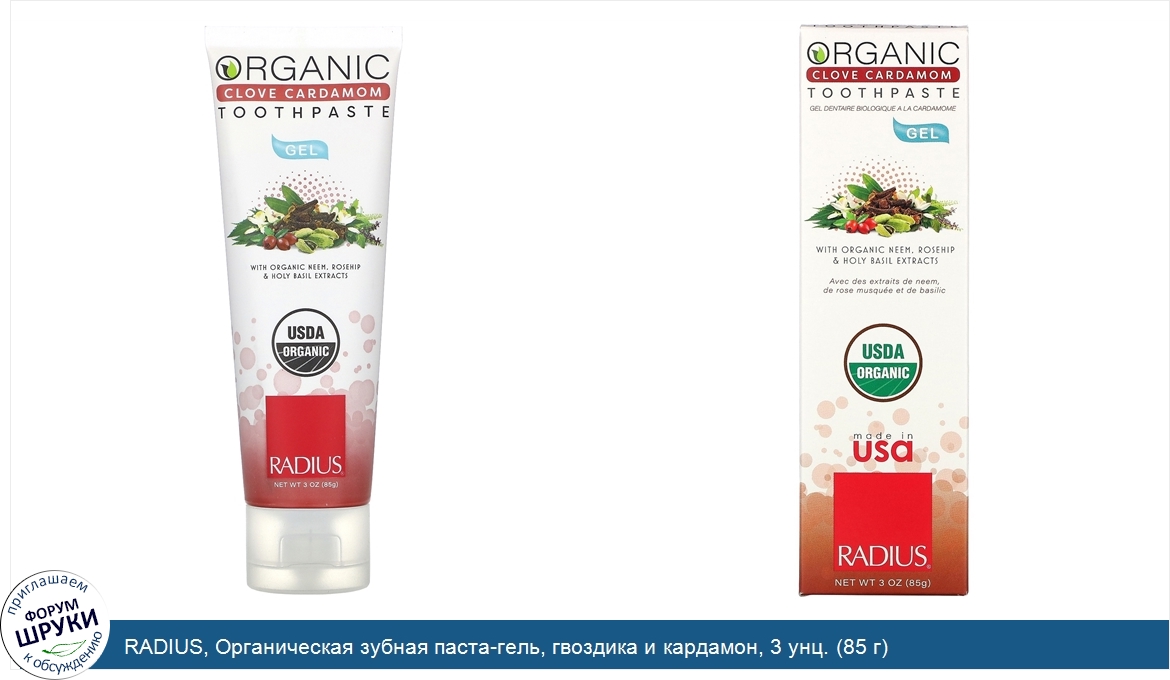 RADIUS, Органическая зубная паста-гель, гвоздика и кардамон, 3 унц. (85 г)