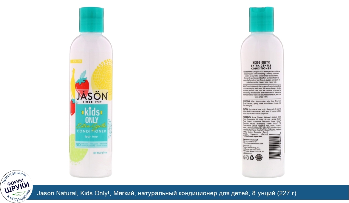 Друзья, если у вас есть отзыв/дополнение/комментарий/вопрос относительно Jason Natural, Kids Only!, Мягкий, натуральный кондиционер для детей, 8 унций (227 г) - напишите его ответом в эту тему (это будет полезно всему сообществу в целом и вам в отдельности).