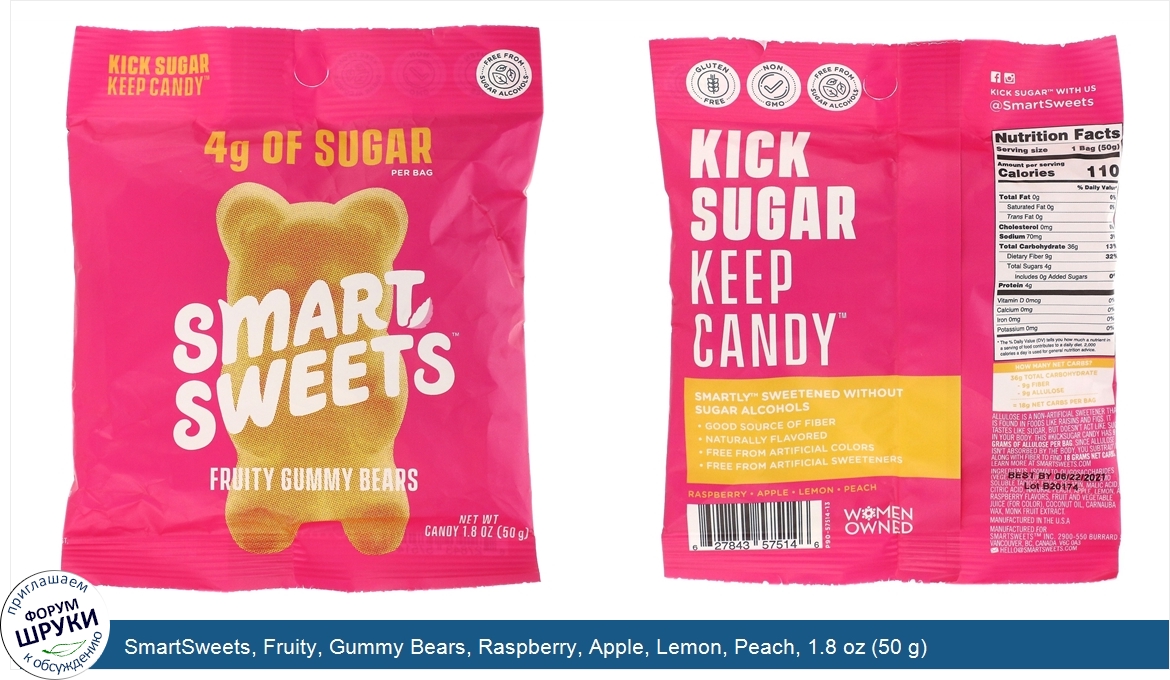 Друзья, если у вас есть отзыв/дополнение/комментарий/вопрос относительно SmartSweets, Fruity, Gummy Bears, Raspberry, Apple, Lemon, Peach, 1.8 oz (50 g) - напишите его ответом в эту тему (это будет полезно всему сообществу в целом и вам в отдельности).