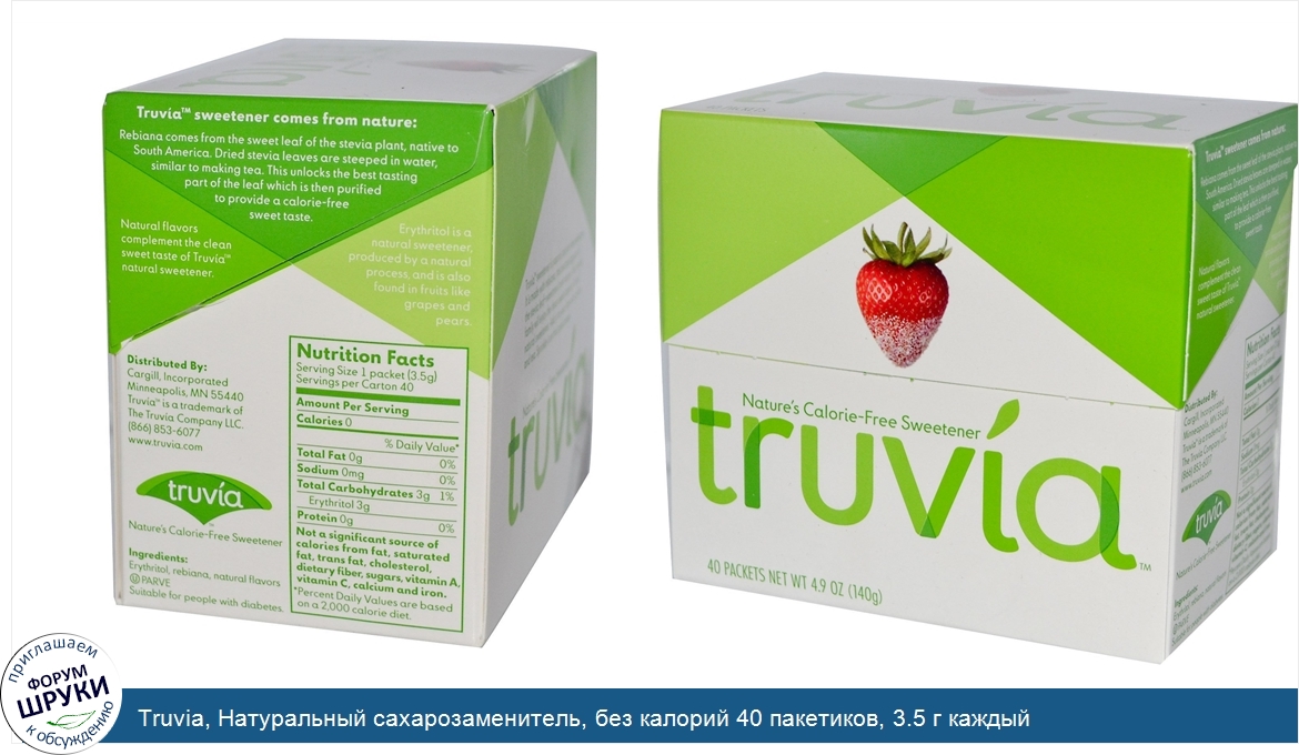 Друзья, если у вас есть отзыв/дополнение/комментарий/вопрос относительно Truvia, Натуральный сахарозаменитель, без калорий 40 пакетиков, 3.5 г каждый - напишите его ответом в эту тему (это будет полезно всему сообществу в целом и вам в отдельности).