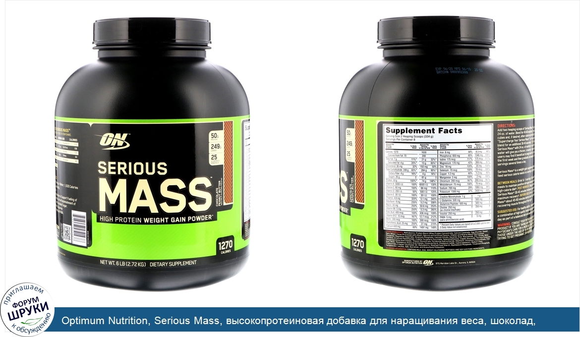 Друзья, если у вас есть отзыв/дополнение/комментарий/вопрос относительно Optimum Nutrition, Serious Mass, высокопротеиновая добавка для наращивания веса, шоколад, арахисовое масло, 6 фунтов (2,72 кг) - напишите его ответом в эту тему (это будет полезно всему сообществу в целом и вам в отдельности).