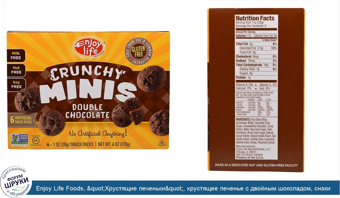 Друзья, если у вас есть отзыв/дополнение/комментарий/вопрос относительно Enjoy Life Foods, "Хрустящие печеньки", хрустящее печенье с двойным шоколадом, снэки в отдельных упаковках, 6 шт. по 1 унции (28 г) - напишите его ответом в эту тему (это будет полезно всему сообществу в целом и вам в отдельности).