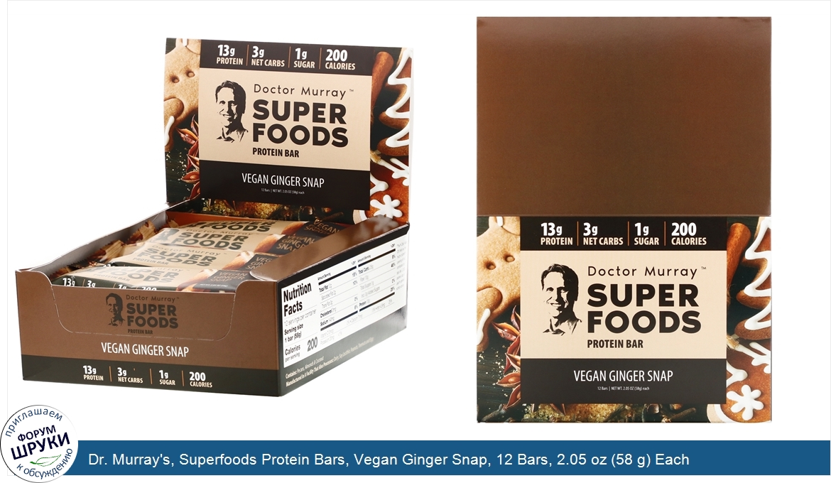 Dr. Murray's, Superfoods Protein Bars, Vegan Ginger Snap, 12 Bars, 2.05 oz (58 g) Each