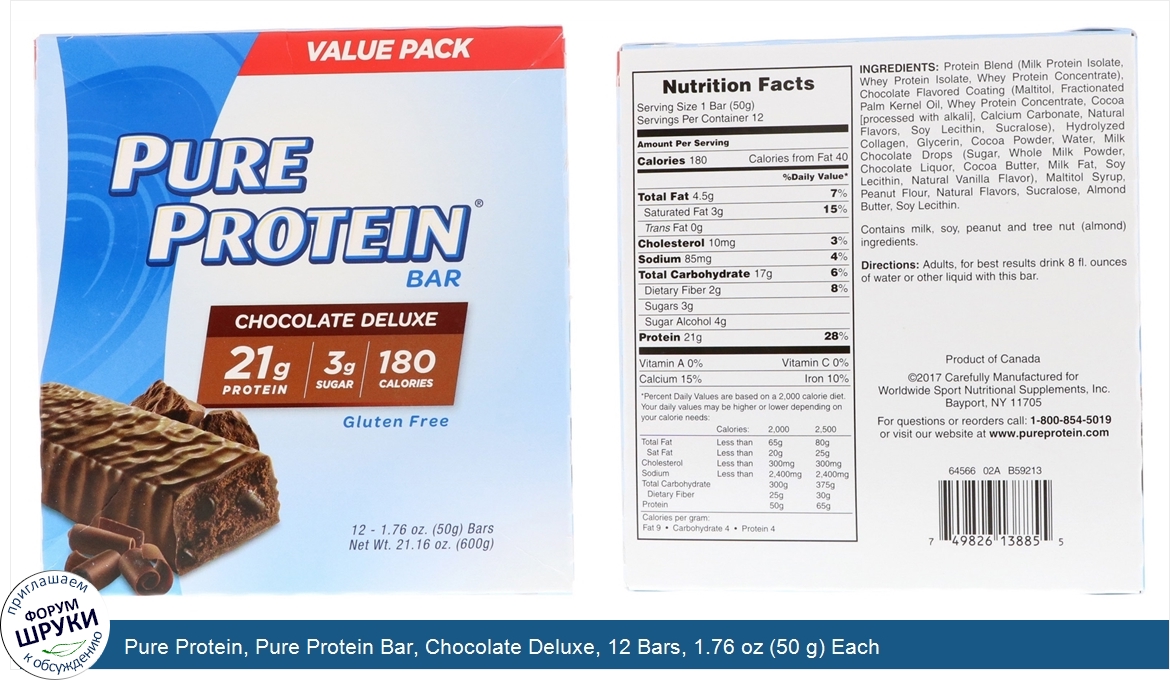 Pure Protein, Pure Protein Bar, Chocolate Deluxe, 12 Bars, 1.76 oz (50 g) Each