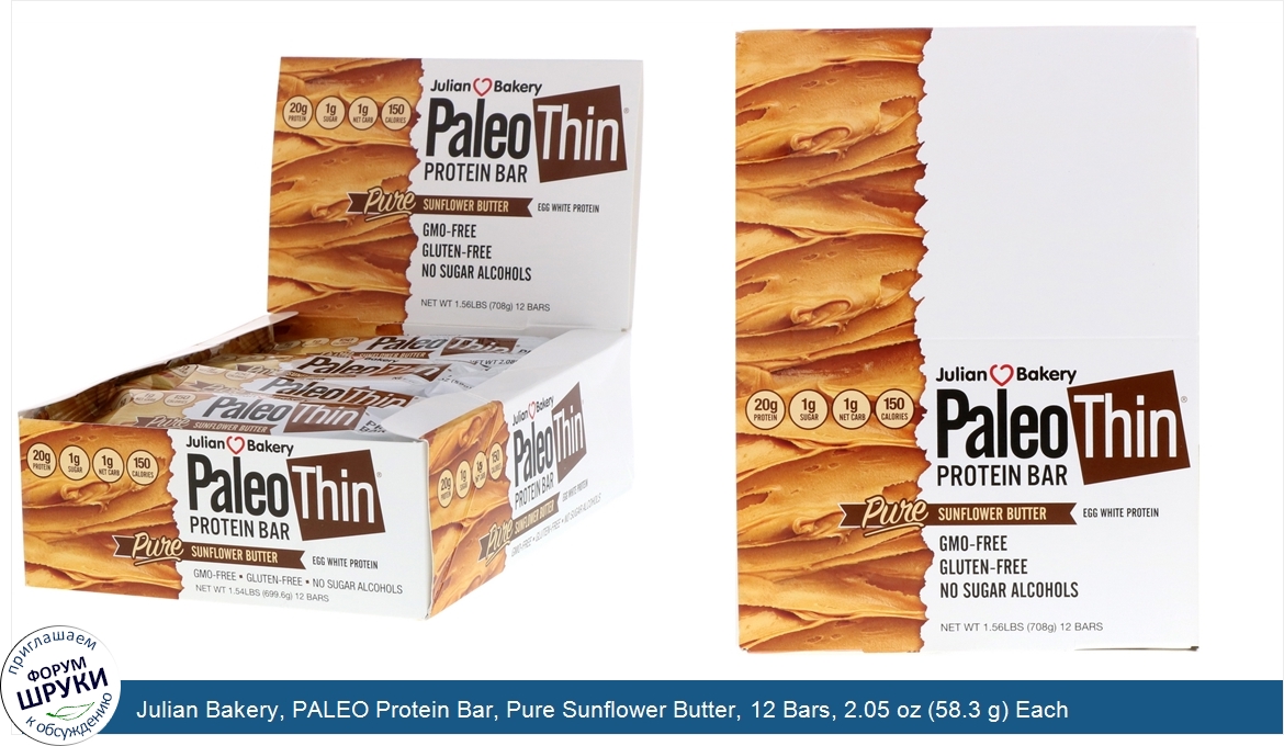 Julian Bakery, PALEO Protein Bar, Pure Sunflower Butter, 12 Bars, 2.05 oz (58.3 g) Each