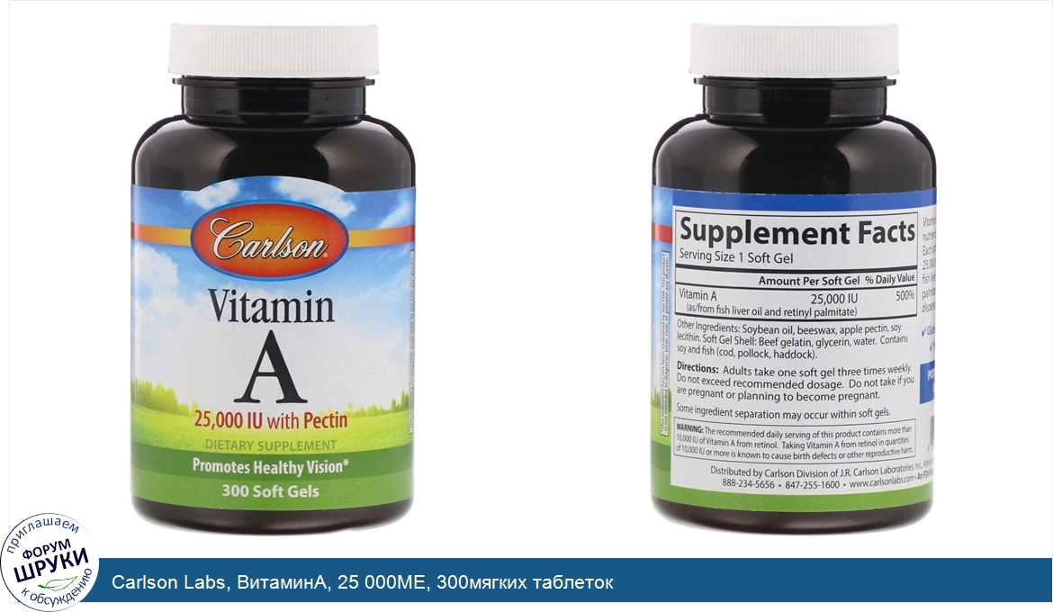 ru Carlson Labs, ВитаминA, 25 000МЕ, 300мягких таблеток