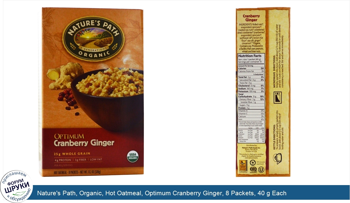 Друзья, если у вас есть отзыв/дополнение/комментарий/вопрос относительно Nature's Path, Organic, Hot Oatmeal, Optimum Cranberry Ginger, 8 Packets, 40 g Each - напишите его ответом в эту тему (это будет полезно всему сообществу в целом и вам в отдельности).