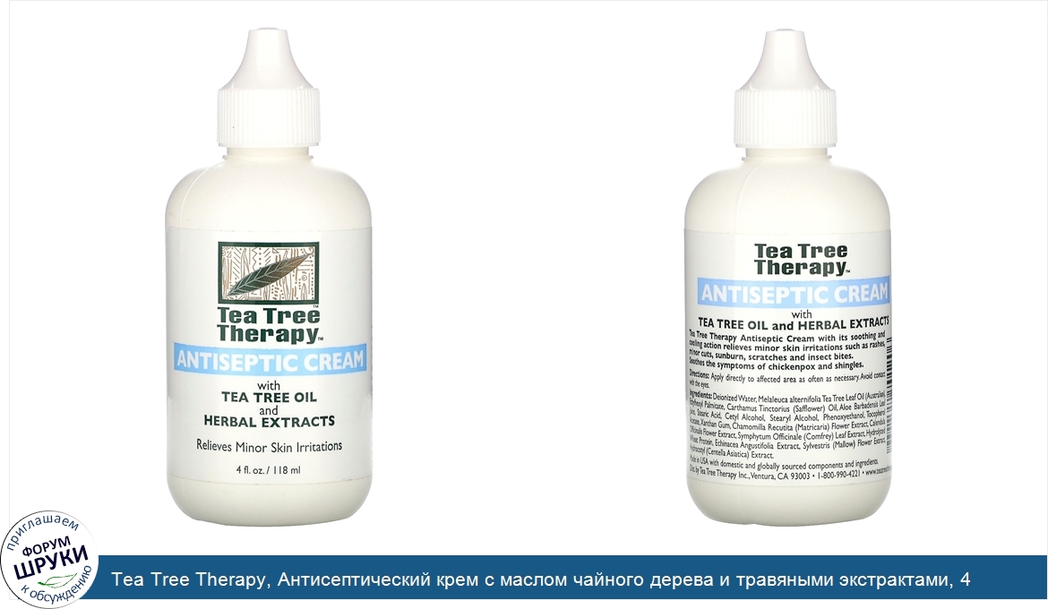 Друзья, если у вас есть отзыв/дополнение/комментарий/вопрос относительно Tea Tree Therapy, Антисептический крем с маслом чайного дерева и травяными экстрактами, 4 жидких унций (118 мл) - напишите его ответом в эту тему (это будет полезно всему сообществу в целом и вам в отдельности).